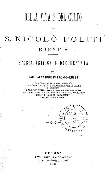 Il Prevosto Petronio Russo nel 1880 ha pubblicato 3 interi volumi dedicati a San Nicolò ![]() |