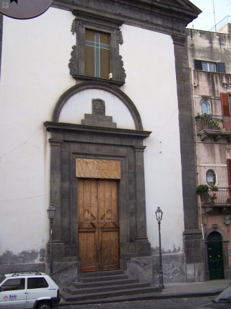 La Chiesa è inserita nella "cortina" di via S. Pietro, a metà circa del percorso verso p.zza Guzzardi. essa presenta un bel portale di carattere rinascimentale. E' costituito da due paraste laterali scanalate ed una cornice che racchiue la parte d'ingresso.